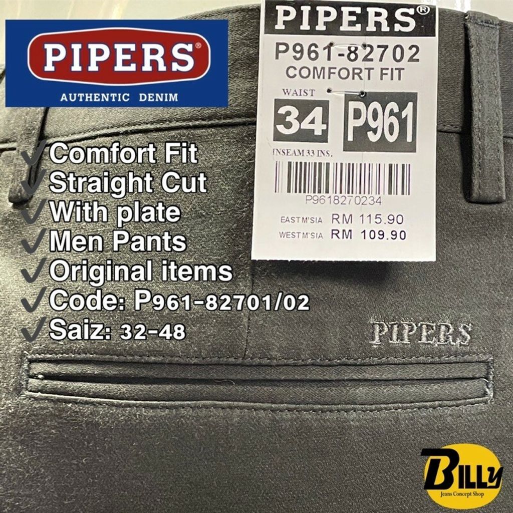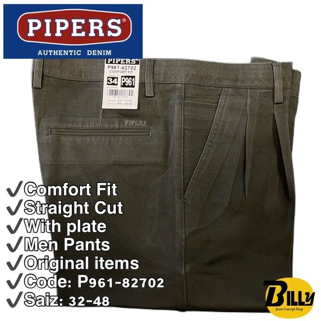 PIPERS Brand Men Comfort Fit (Straight Cut) Cotton Pants(P961)