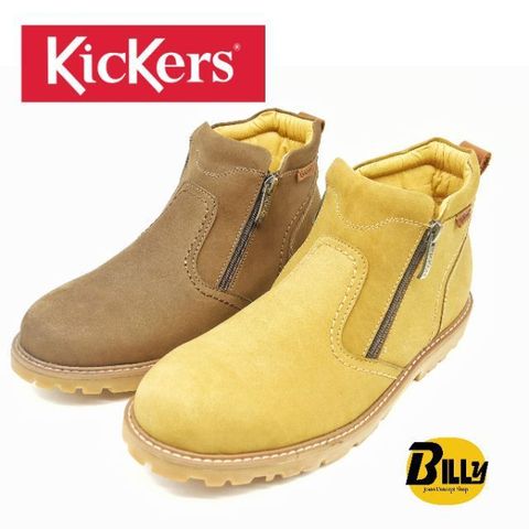 KICKERS Brand Men's Genuine Leather Dual-Zip Mid Cut Yellow Boots (KK100191)